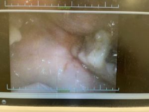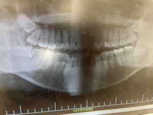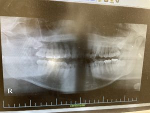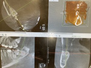 ほら、微妙に頭をひょっこりとだしているでしょう、これが親知らずです。まずはctをとって神経との位置を確認、ほっぺた側ベロ側をしっかりと確認していきます。ほっぺた側にある場合の方が当然ながらぬきやすいです。