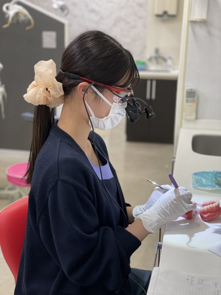 今日は歯石取り、歯の中のお掃除の練習をしています。